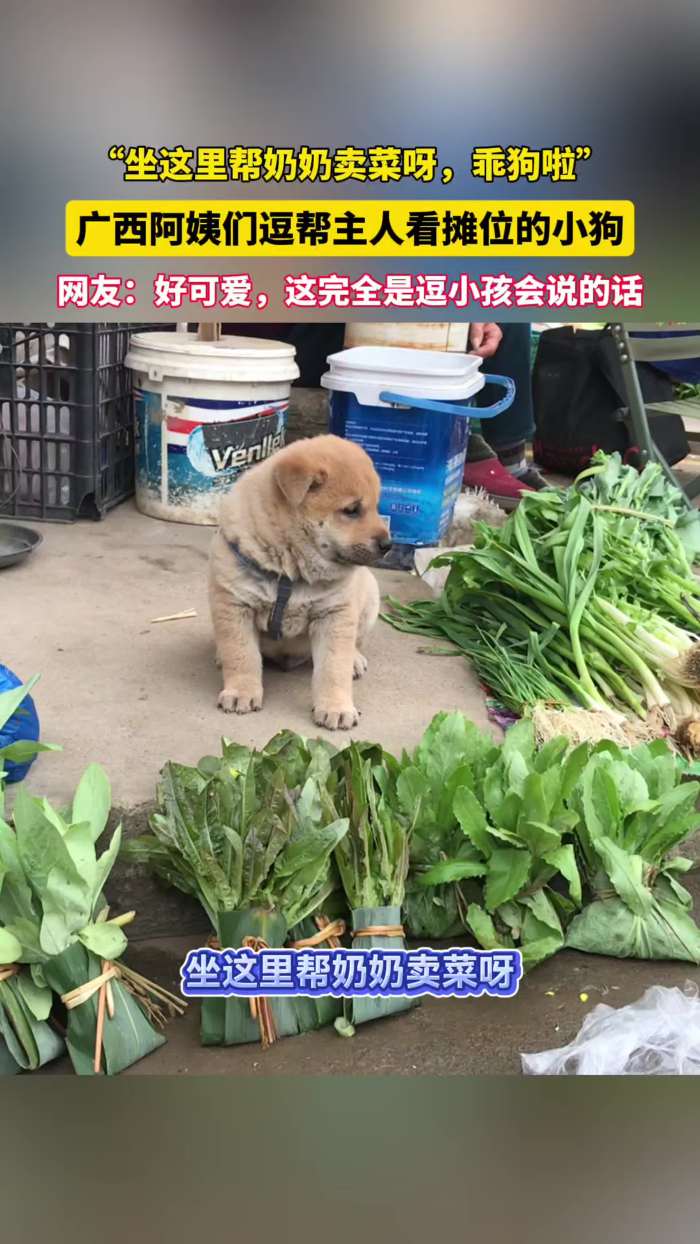 “坐这里帮奶奶卖菜呀,乖狗啦!”广西阿姨们逗帮主人看摊位的小狗,网友:好可爱,这完全是逗小孩会说的话
