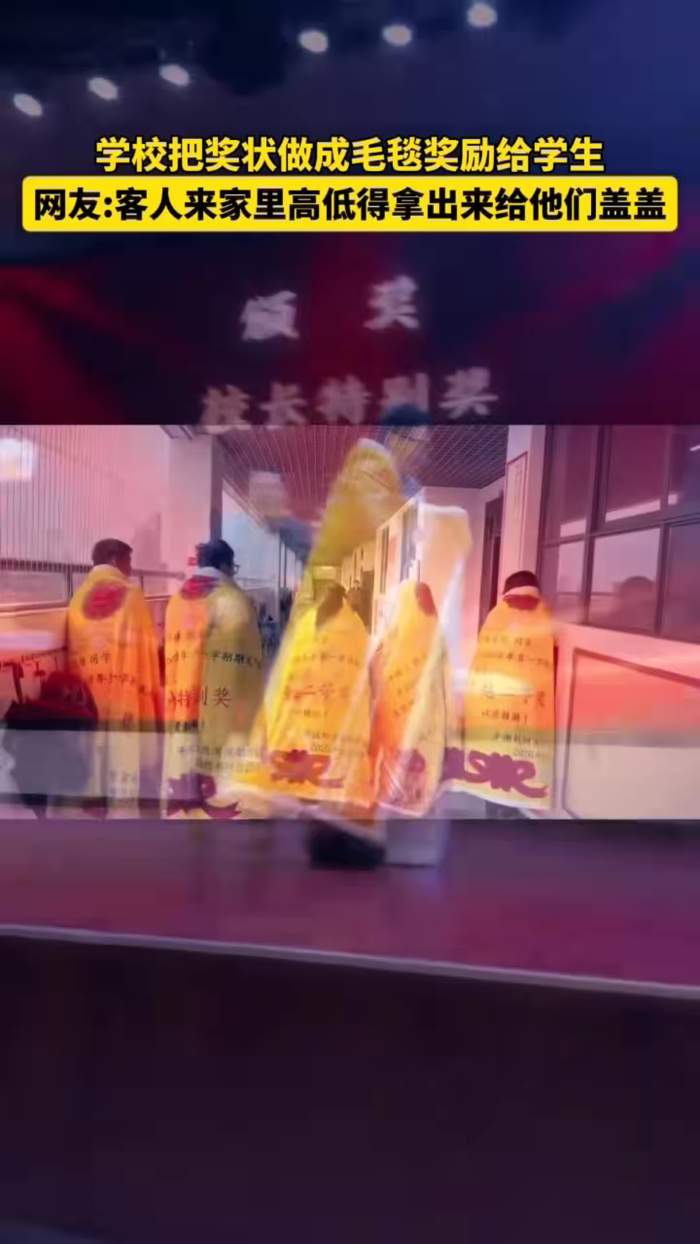 学校把奖状做成毛毯奖励给学生,网友:客人来家里高低得拿出来给他们盖盖