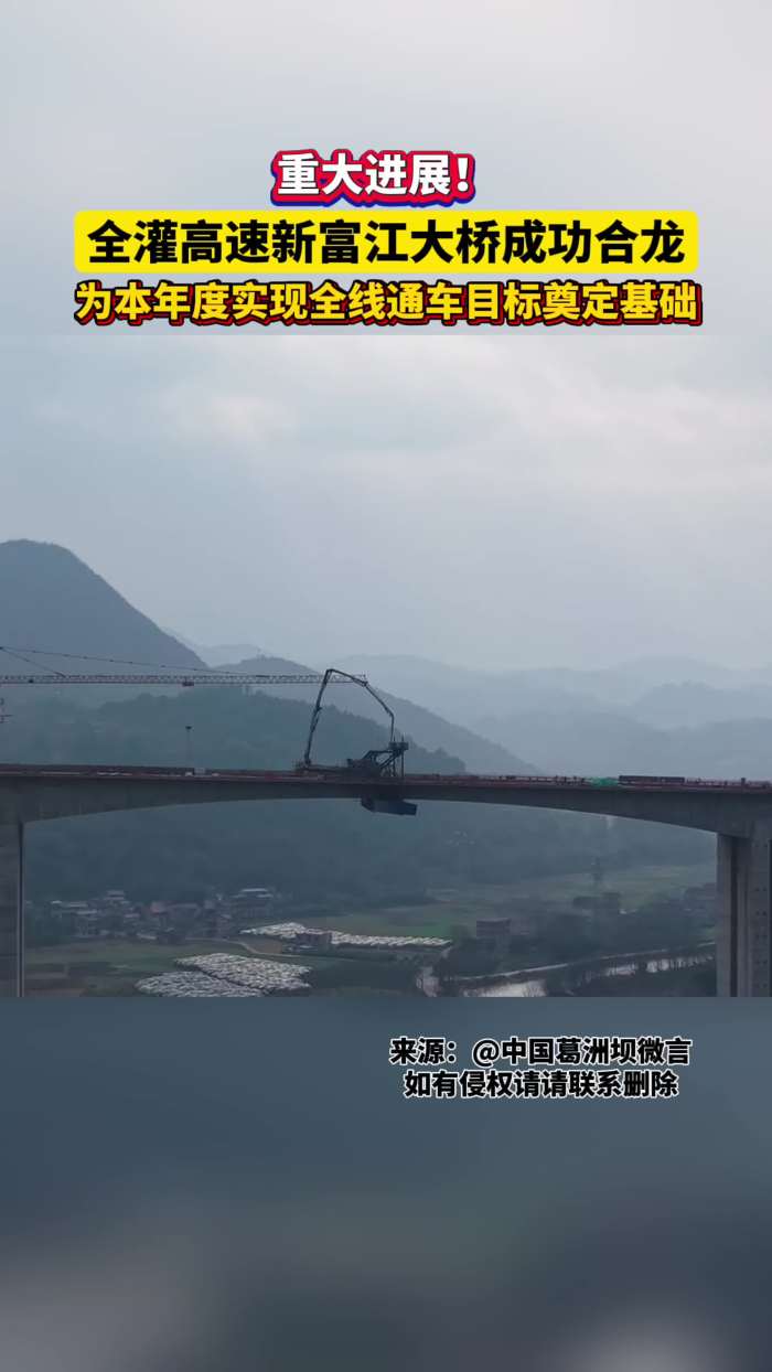 重大进展!全灌高速新富江大桥成功合龙,为本年度实现全线通车目标奠定基础