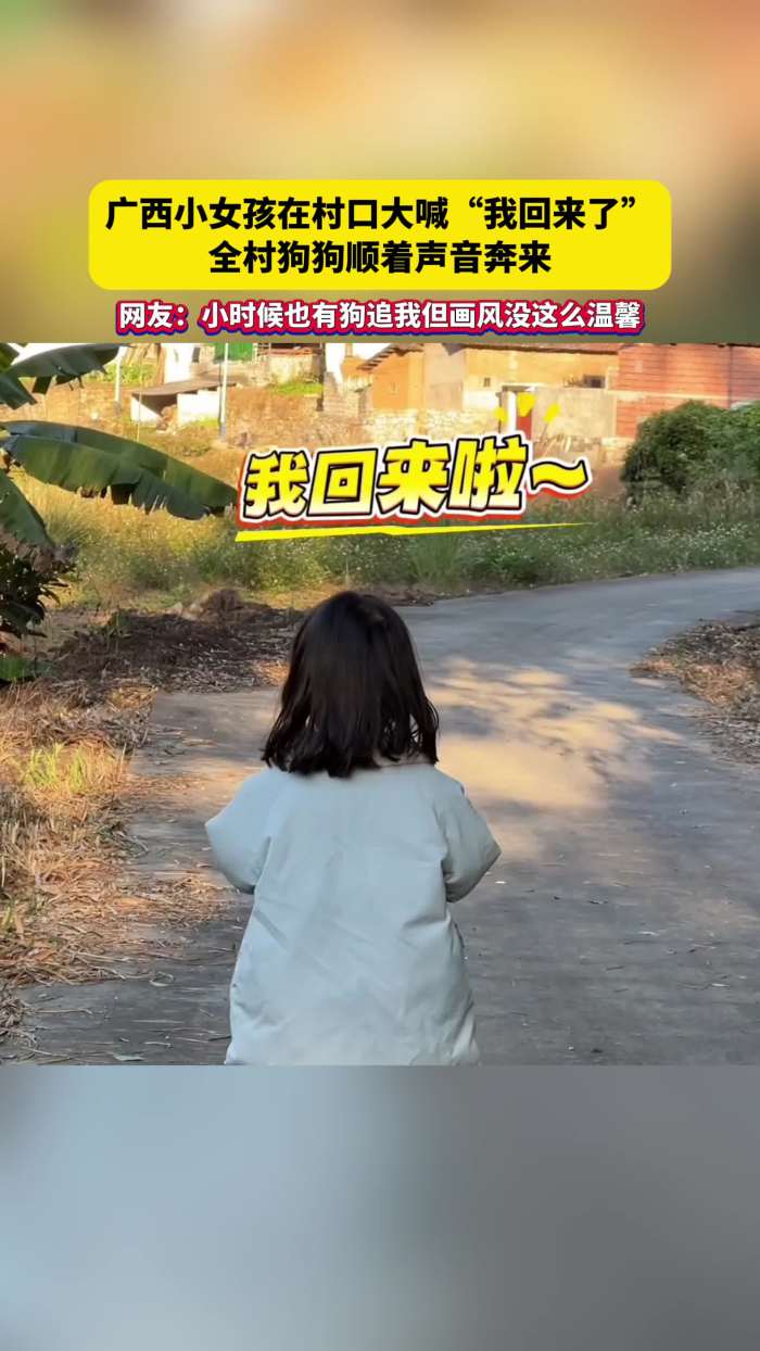 广西小女孩在村口大喊“我回来了”,全村狗狗顺着声音奔来。网友:小时候也有狗追我 但画风没这么温馨