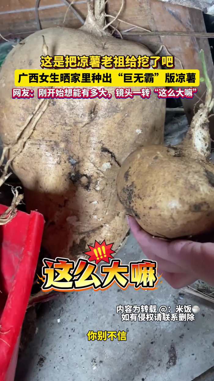 这是把凉薯老祖给挖了吧!广西女生晒家里种出“巨无霸”版凉薯!网友:刚开始想能有多大,镜头一转“这么大的嘛”