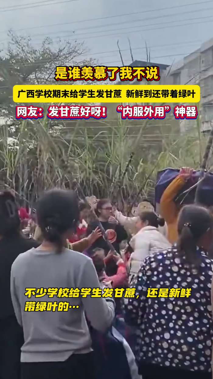 是谁羡慕了我不说!广西学校期末给学生发甘蔗,新鲜到还带着绿叶!网友:发甘蔗好呀,“内服外用”神器