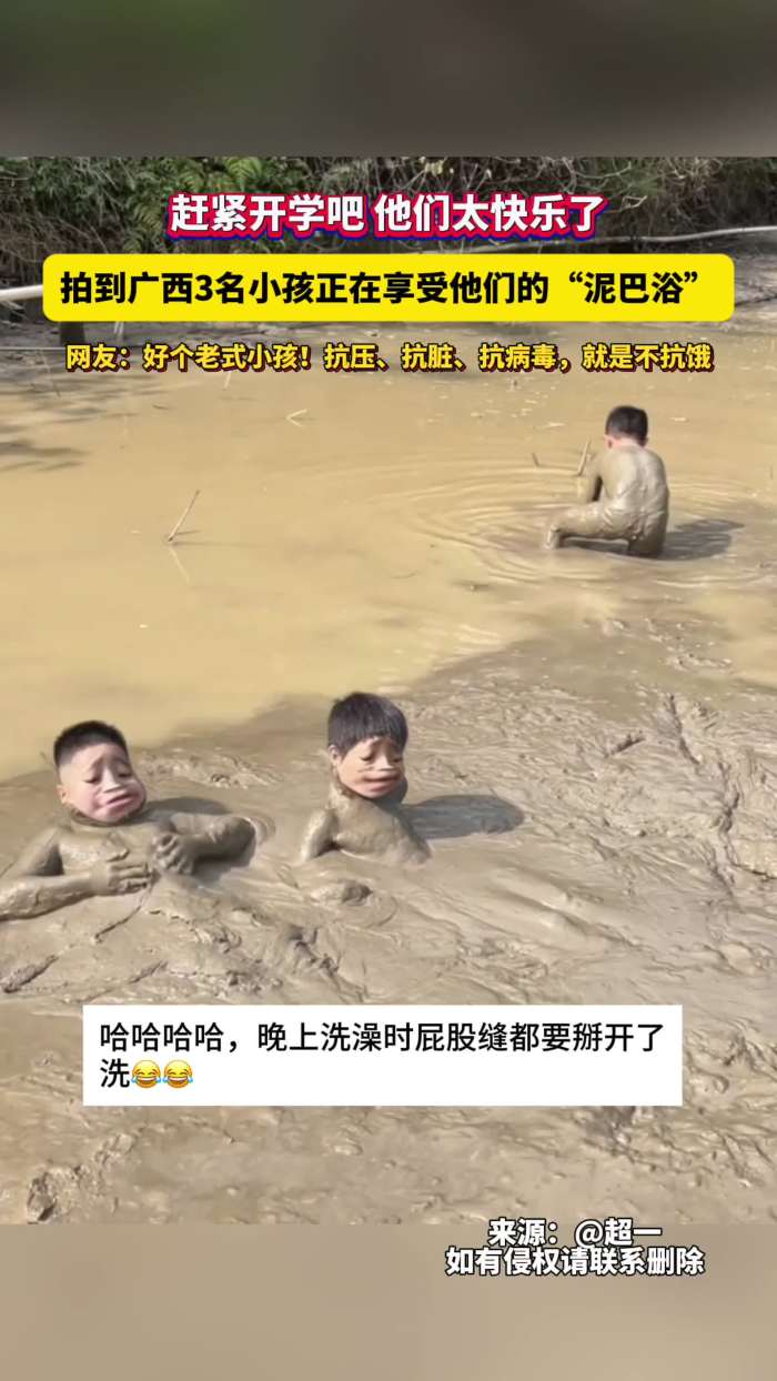 赶紧开学吧,他们太快乐了!拍到广西3名小孩正在享受他们的“泥巴浴”!网友:好个老式小孩!抗压、抗脏、抗病毒,就是不抗饿