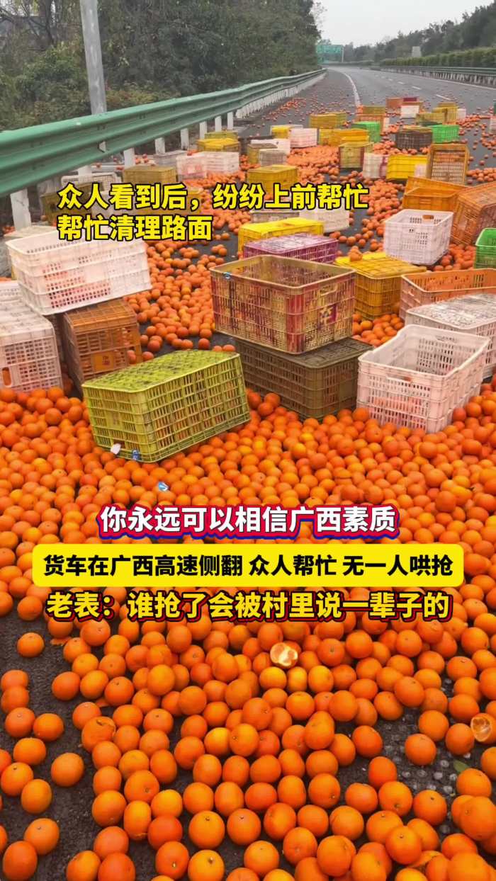 你永远可以相信广西人的素质!货车在广西高速侧翻,水果撒落一地,众人帮忙无一人哄抢!老表:谁抢了会被村里说一辈子的