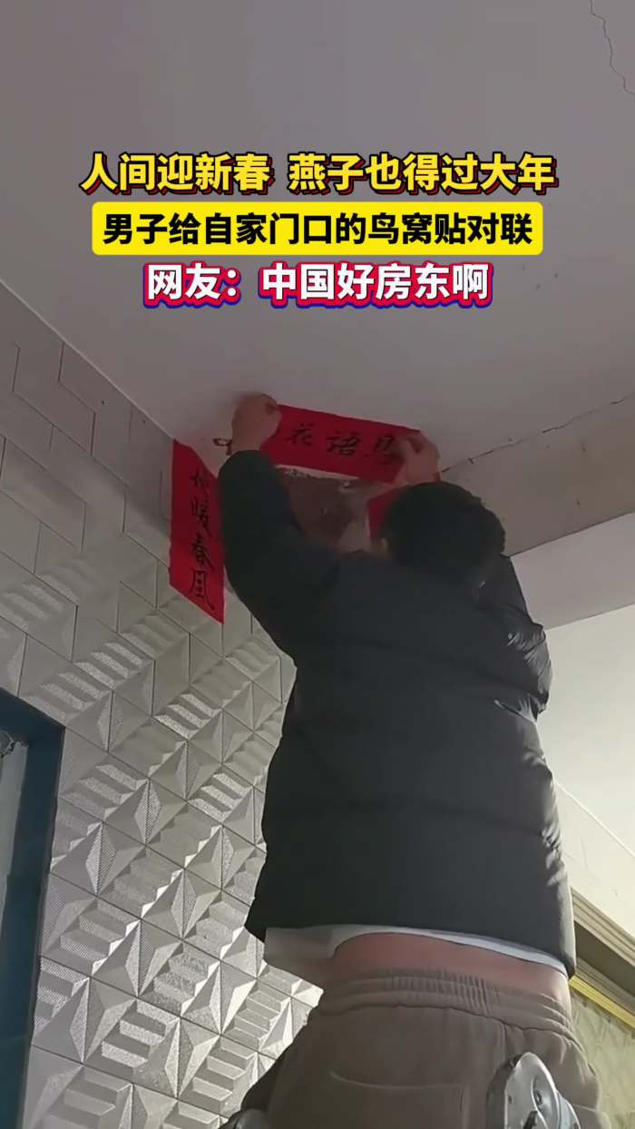 人间迎新春,燕子也得过大年!男子给自家门口的鸟窝贴对联!网友:中国好房东啊