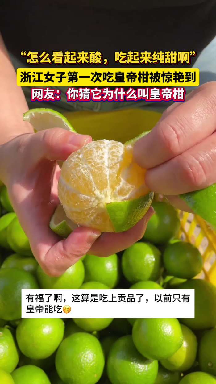 “怎么看起来酸,吃起来纯甜啊”!浙江女子第一次吃皇帝柑被惊艳到!网友:你猜它为什么叫皇帝柑