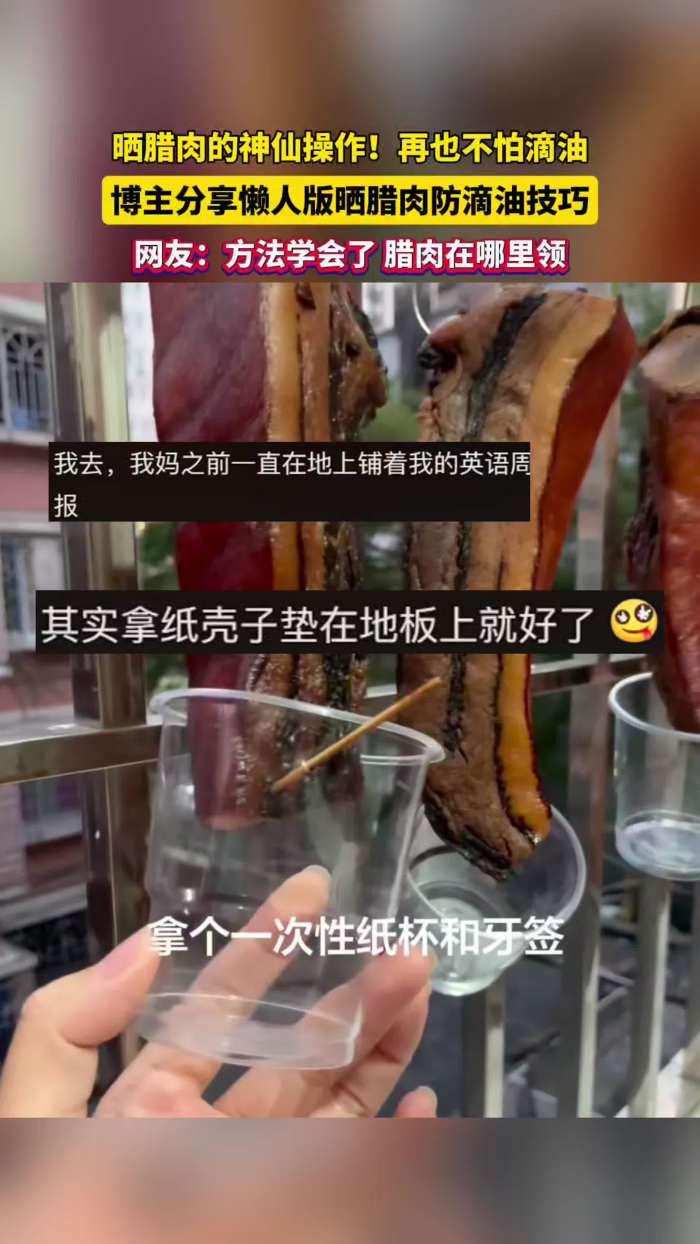 博主分享懒人版晒腊肉防滴油技巧!网友:方法学会了,腊肉在哪领?