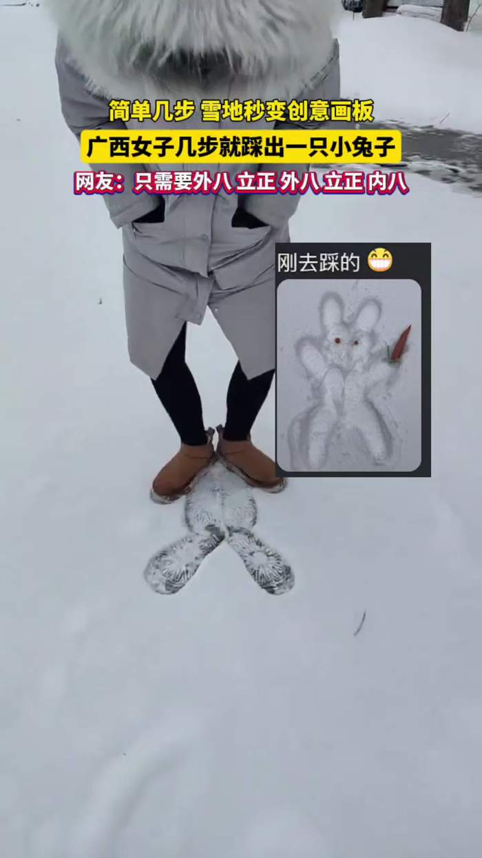广西女子几步就踩出一个小兔子,网友:只需要外八、立正、外八、立正、内八