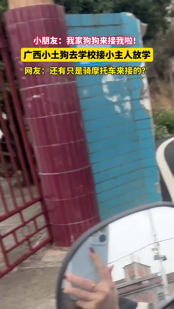 广西小土狗去学校接小主人放学,网友:还有只是骑摩托车来接的?