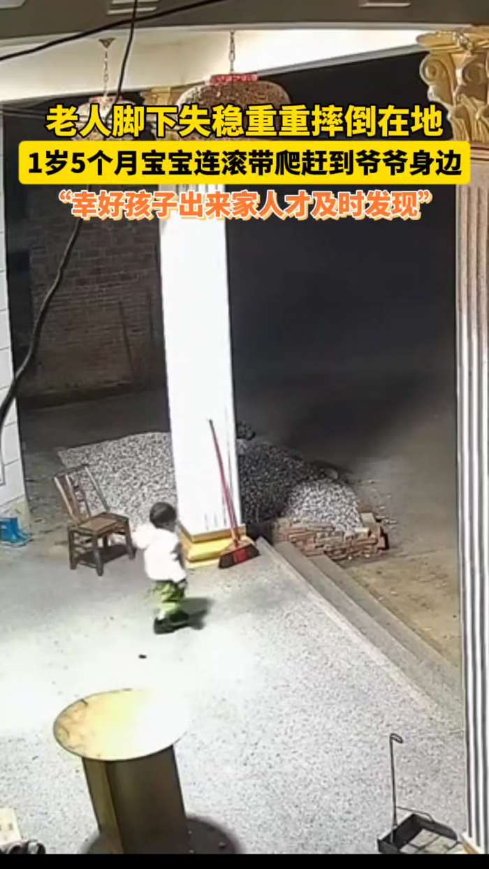 老人脚下失稳重重摔倒在地,1岁5个月宝宝连滚带爬赶到爷爷身边,“幸好孩子出来家人才及时发现”