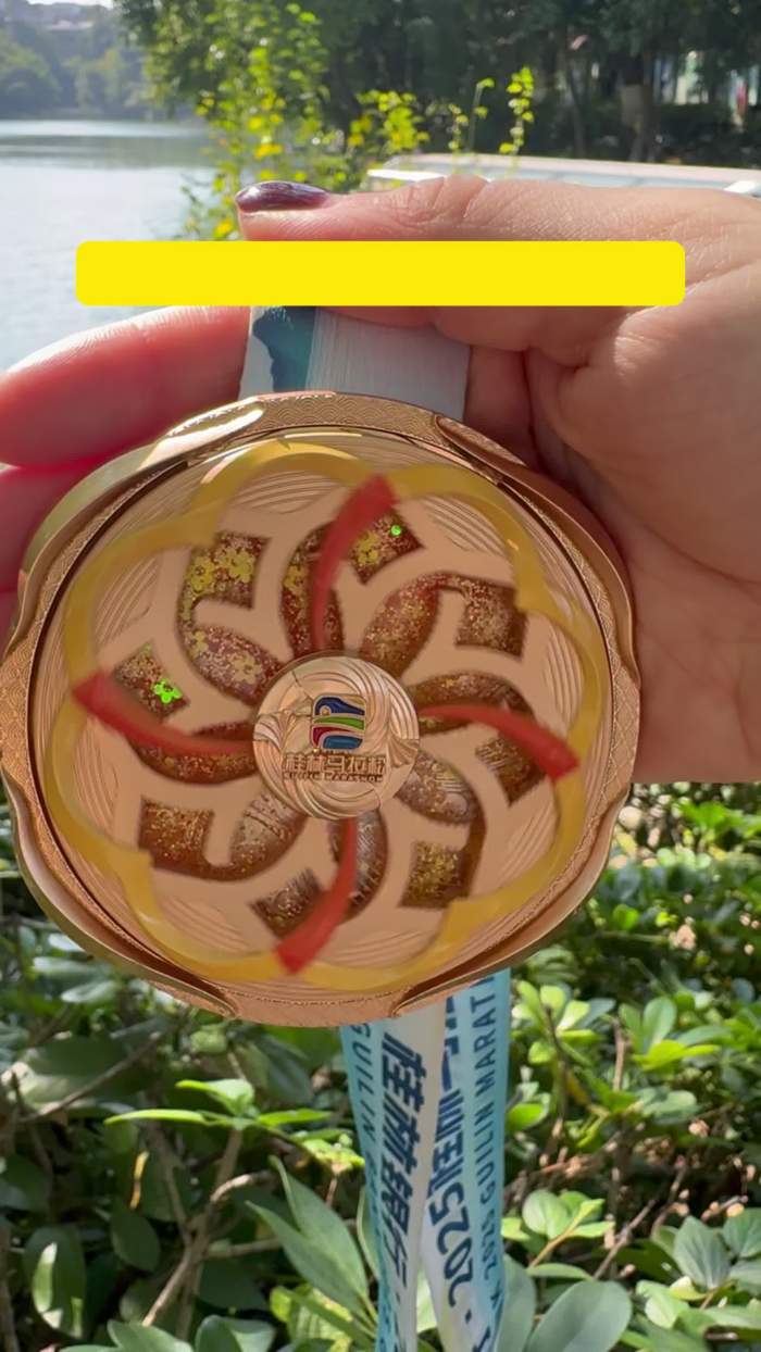 • 漓江水纹在指尖流转,桂花与流沙在光影间闪烁…2025桂林马拉松奖牌实物太惊艳!