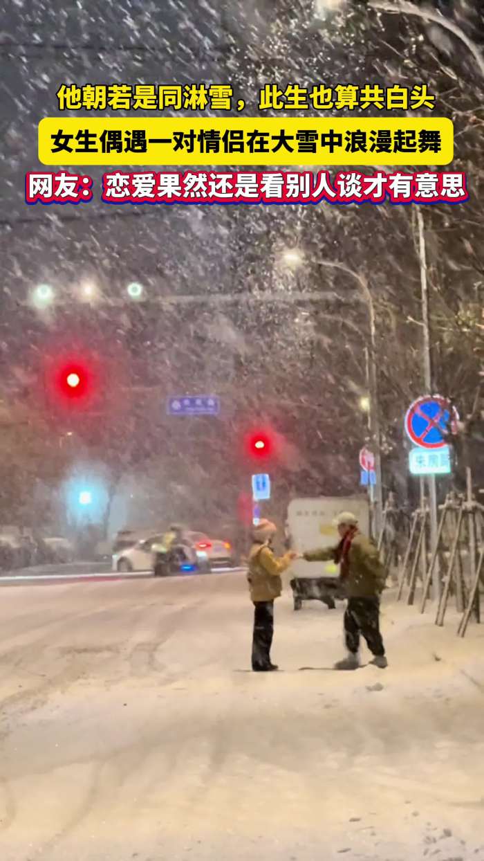 他朝若是同淋雪,此生也算共白头!女生偶遇一对情侣在大雪中浪漫起舞,网友:恋爱果然还是看别人谈才有意思