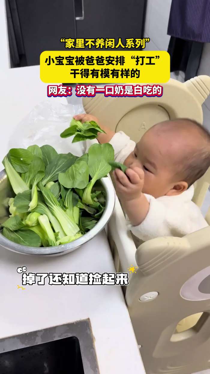 • 小宝宝被爸爸安排“打工”,干得有模有样的。网友:没有一口奶是白吃的