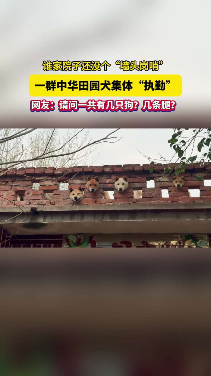 谁家院子还没个“墙头岗哨” 一群中华田园犬集体“执勤” 网友:请问一共有几只狗?几条腿?