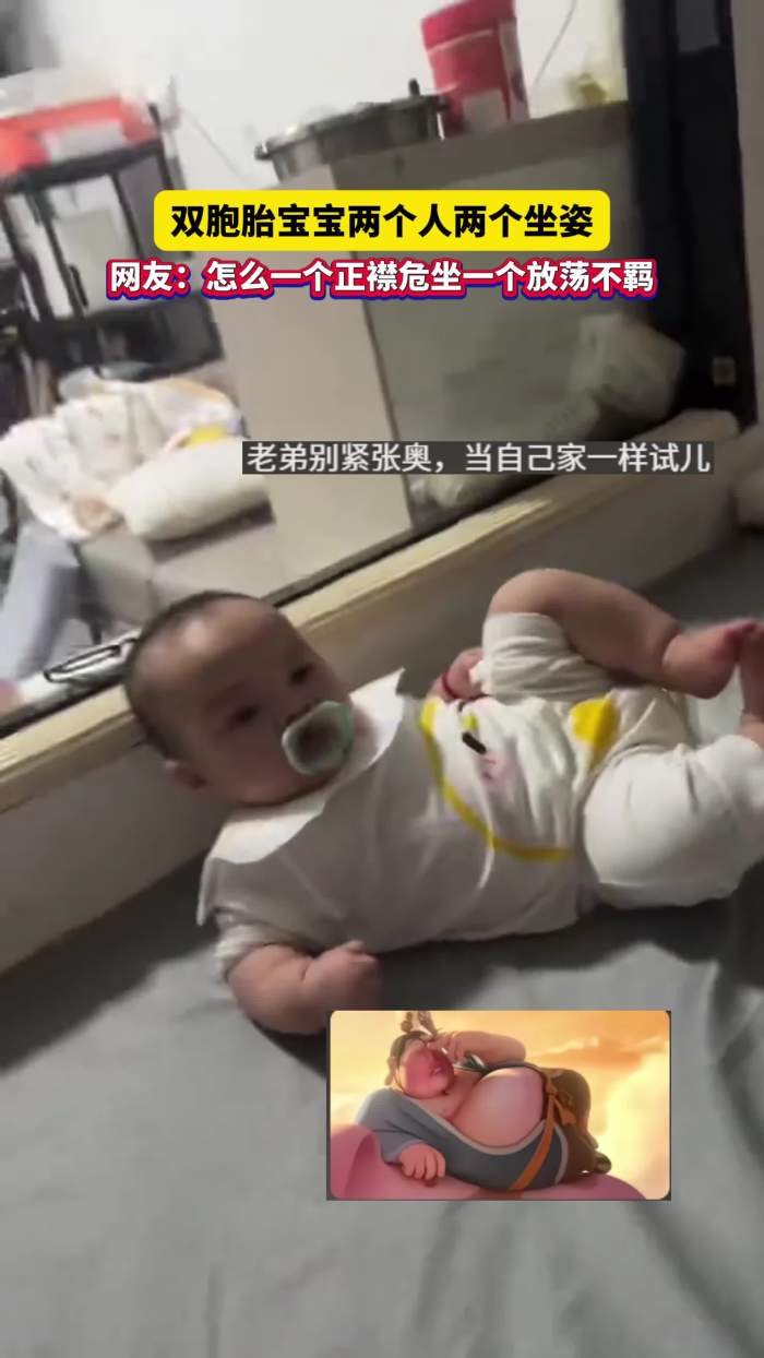 双胞胎宝宝两个人两个坐姿,网友:怎么一个正襟危坐一个放荡不羁