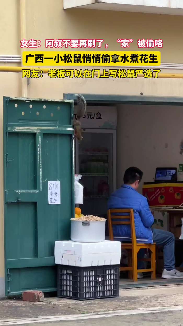 广西一小松鼠悄悄偷拿水煮花生,女生:阿叔不要再刷了,“家”被偷咯