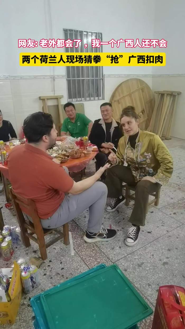 两个荷兰人现场猜拳“抢”广西扣肉,网友: 老外都会了 ,我一个广西人还不会