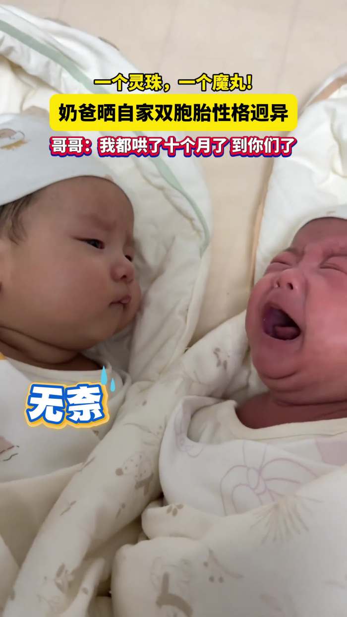 一个灵珠,一个魔丸!奶爸晒自家双胞胎性格迥异,哥哥:我都哄了十个月了 到你们了