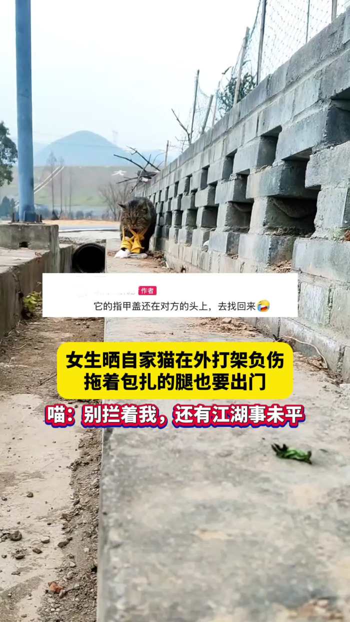• 不愧是猫中丧彪!女生晒自家猫在外打架负伤,拖着包扎的腿也要出门!喵:别拦着我,还有江湖事未平