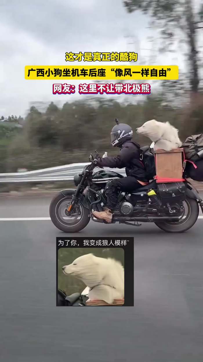 这才是真正的酷狗!广西小狗坐机车后座“像风一样自由”! 网友:这里不让带北极熊