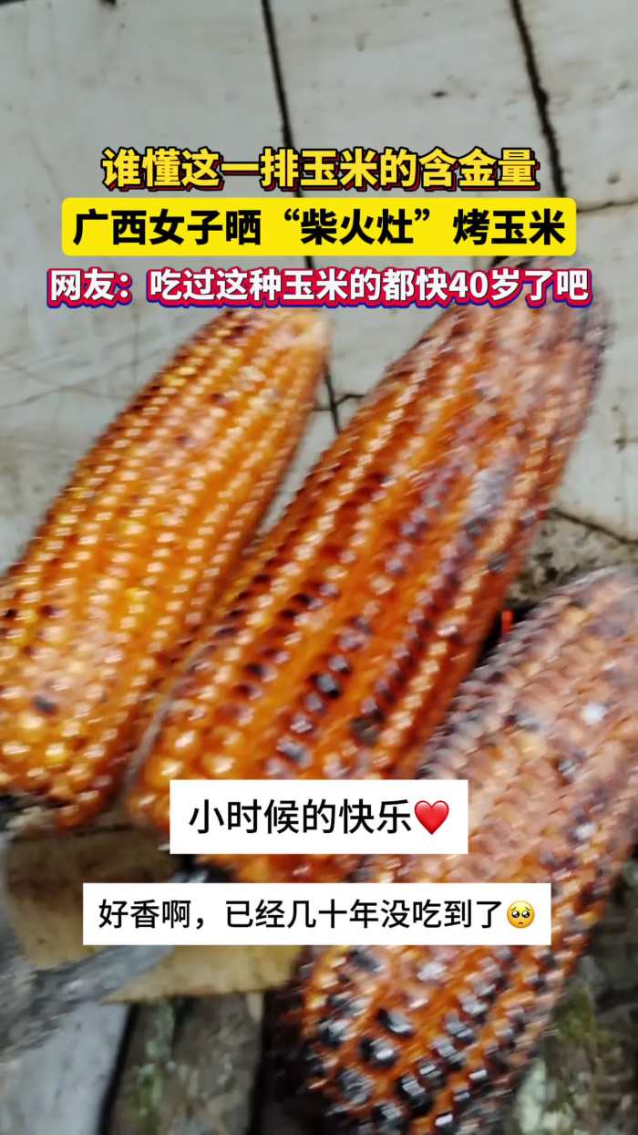 谁懂这一排玉米的含金量!广西女子晒“柴火灶”烤玉米!网友:吃过这种玉米的都快40岁了吧