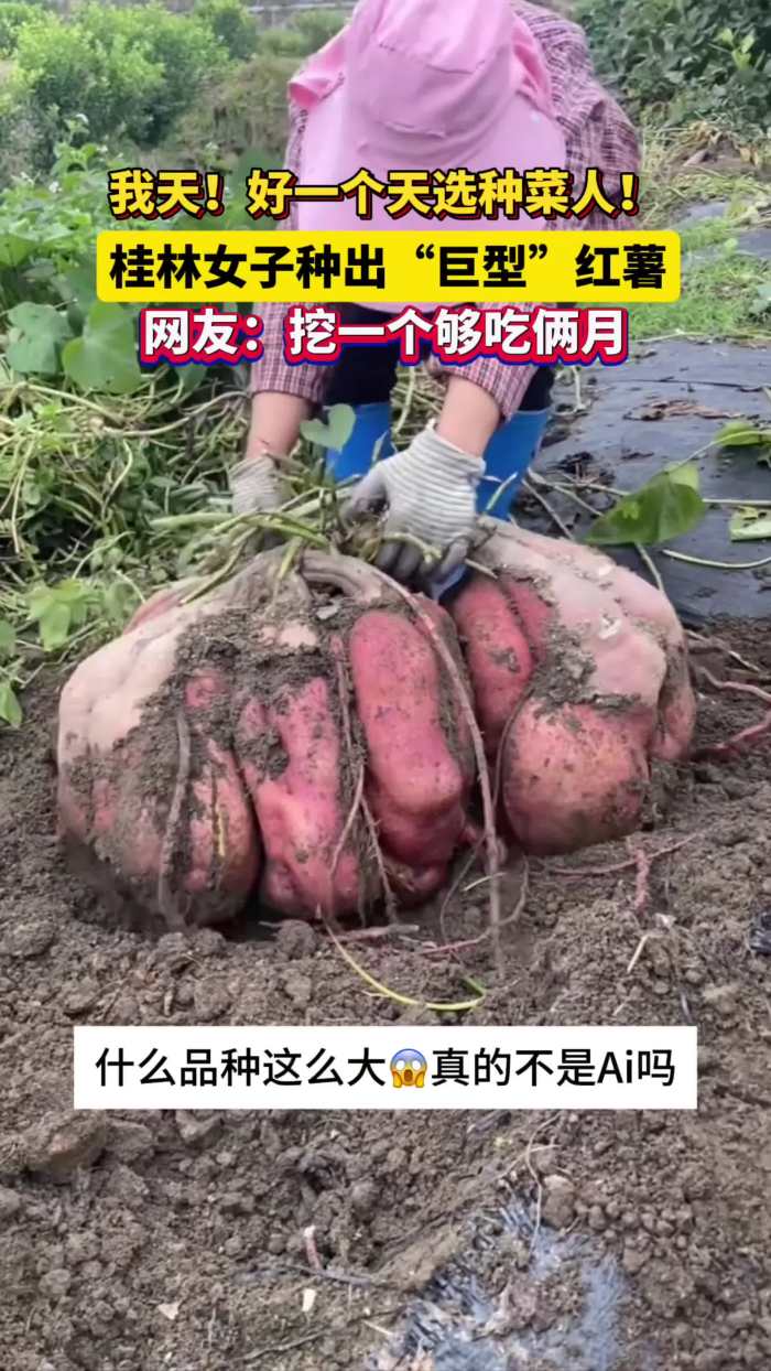 好一个天选种菜人!桂林女子种出“巨型”红薯!网友:挖一个月够吃俩月